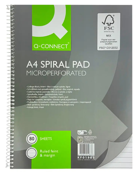 Blok College Q-Connect s kovovou špirálou formátu A4 s 80 listami, so špirálou na boku v atraktívnom vyhotovení. Väčšie balenie 10 ks. Úprava: linajková Počet listov: 80 dierovanie 4