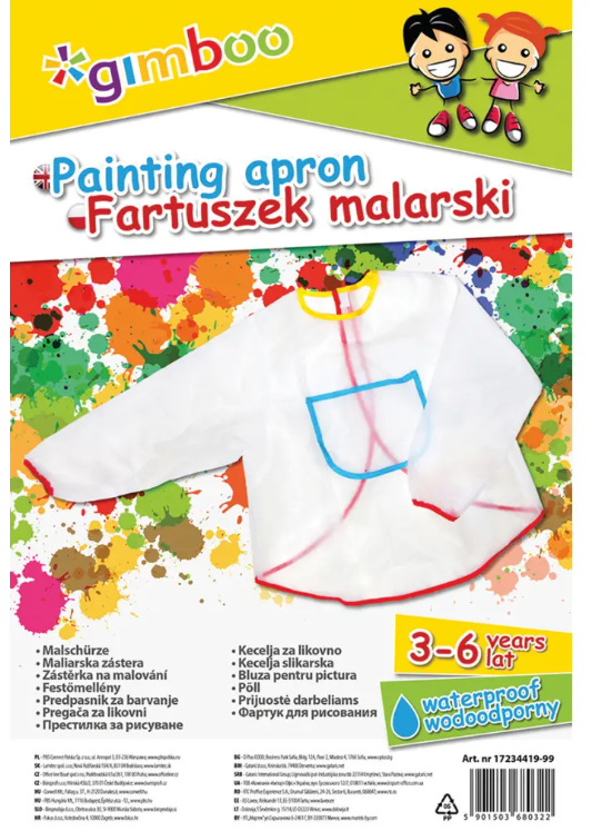 Zástera s rukávmi a vreckom, ktorá pomôže deťom ochrániť oblečenie pred zašpinením. Vhodné pre deti od 3-6 rokov. Farba priesvitná.
