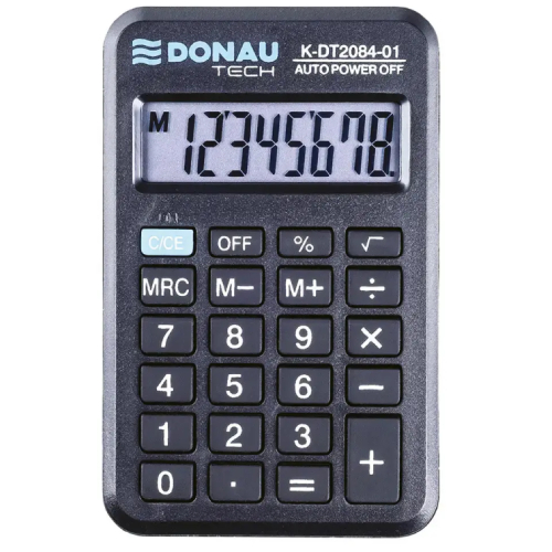 Kalkulačka s 8-miestnym displejom a gumenými tlačidlami. Farba čierna. Technická špecifikácia: Výpočet % a odmocniny. Automatické vypnutie. Napájanie batériou. Rozmery 60 x 97 x 11 mm.
