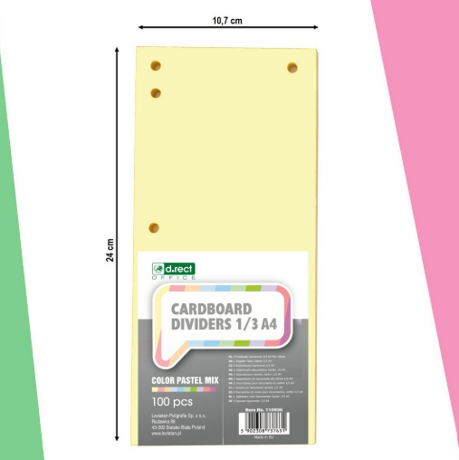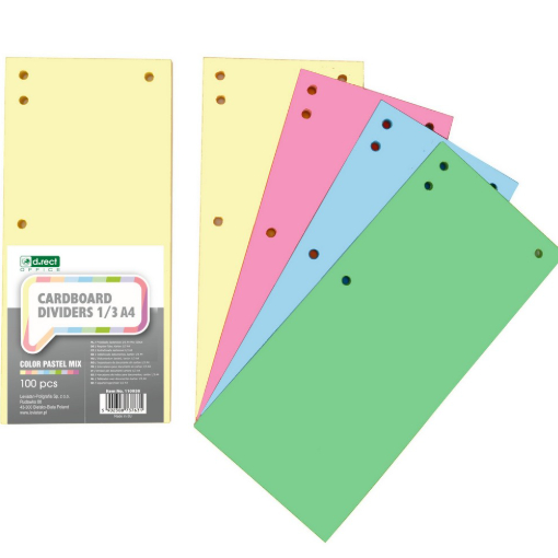 Kartónové rozraďovače určené na triedenie dokumentov v zakladači. Vyrobené z ekologického kartónu s gramážou 200 g. Perforácia na oboch stranách umožňuje vkladanie rozraďovačov na výšku aj na šírku. V mixe 5 farieb: červená, modrá, oranžová, zelená a žltá.