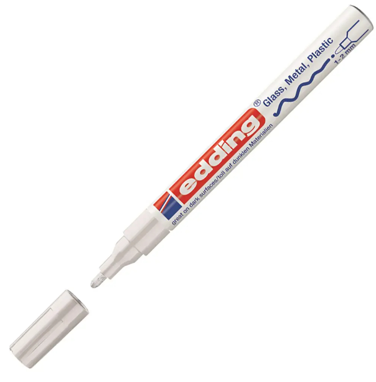 Lakový popisovač s hliníkovým obalom, vhodný pre vodovzdorné písanie, značkovanie a kreslenie na takmer všetky materiály. Hrot okrúhly, šírka stopy 1 - 2 mm. Cena za 1 ks. Farba: biela.