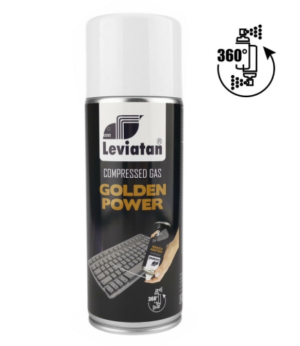 Golden Power 360° stlačený plyn sa používa na odstránenie prachu a iných nečistôt z kancelárskej techniky. Môže sa používať v prevrátenej polohe (hore nohami), bez rizika zamrznutia povrchu. Vhodný na čistenie elektroniky, audio-video zariadení, elektromechanických, optických a presných mechanických prístrojov. Súčasťou je aj dodatočná tryska na presné rozprašovanie, ktorá umožňuje prístup do ťažko dostupných miest. Objem: 200 ml