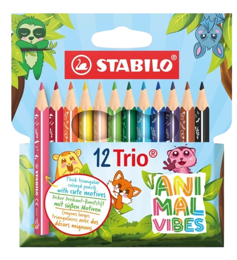 Sada 12 silných krátkych pasteliek STABILO Trio Animal Vibes.