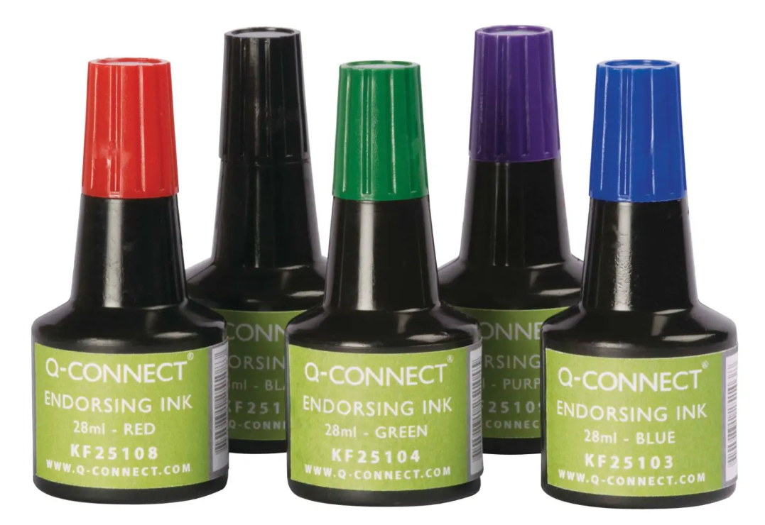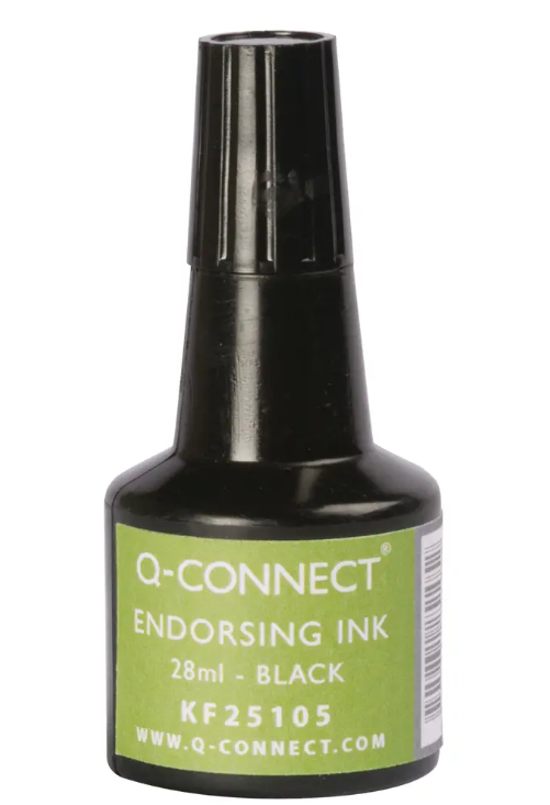 Q-Connect univerzálna pečiatková farba bezolejová, vhodná na gumené a samofarbiace pečiatky. Objem 28 mℓ