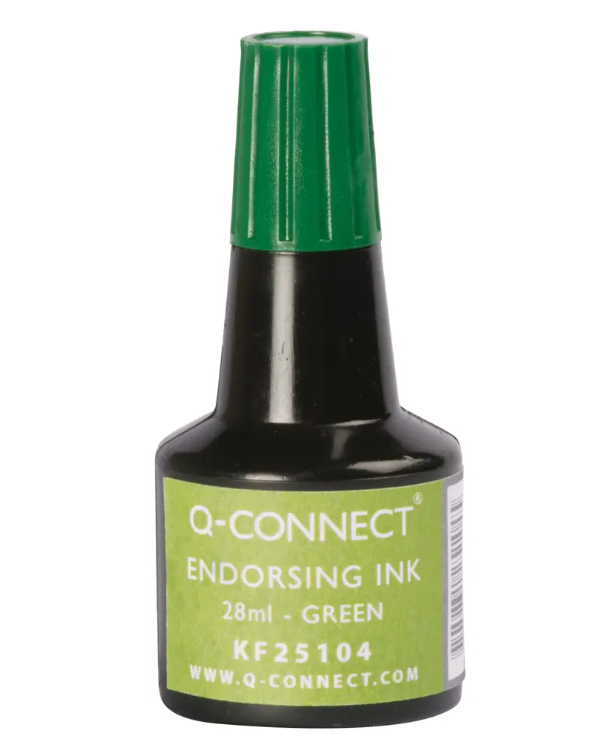 Q-Connect univerzálna pečiatková farba bezolejová, vhodná na gumené a samofarbiace pečiatky. Objem 28 mℓ.
