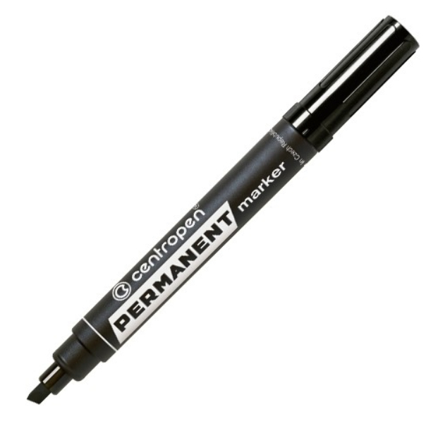 Popisovač s permanentným atramentom na alkoholovej báze, s klinovým hrotom, šírkou stopy 1 - 4,6 mm - stopa písma je odolná voči vode, teplote do 100°C, oteru a poveternostným vplyvom. Určený na písanie na neporézne materiály, plasty, sklo, gumu, kožu, kovy. Farba čierna.