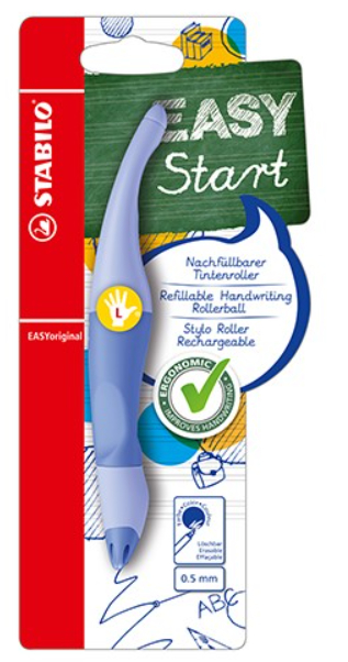 Roller guľôčkový STABILO EASY original Holograph. Ergonomický dizajn, určený pre ľavákov. Uvoľnené držanie pomáha proti únave svalstva ruky a následnej bolesti v ruke pri písaní. Ľahko kĺže po papieri, čisté písanie bez machúľ. Šírka stopy rolleru 0,5 mm. Farba pera: obláčikovo modrá. Náplň: modrá.