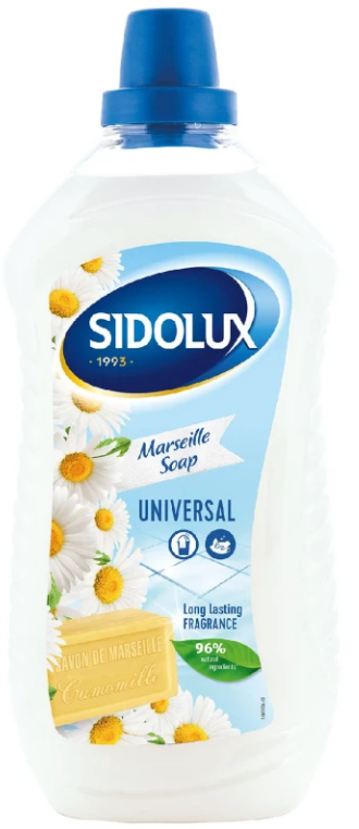 Sidolux univerzálny čistiaci prostriedok s vôňou marseillského mydla je už po mnoho rokov neodmysliteľnou súčasťou miliónov európskych domácností. A nie náhodou. Produkt sa stal synonymom čistoty a krásne vône, ktorá sa v domácnosti rozhostí po upratovaní. Vďaka unikátnemu systému Soda Power, ktorý je súčasťou prostriedku a ktorého pôsobenie zmäkčuje vodu, odstraňuje Sidolux univerzálny čistiaci prostriedok veľmi rýchlo nečistoty z povrchu. Sidolux univerzálny čistiaci prostriedok je Vaším spoľahlivým pomocníkom pri domácom upratovaní. Produkt sa skvele hodí na čistenie všetkých umývateľných povrchov.